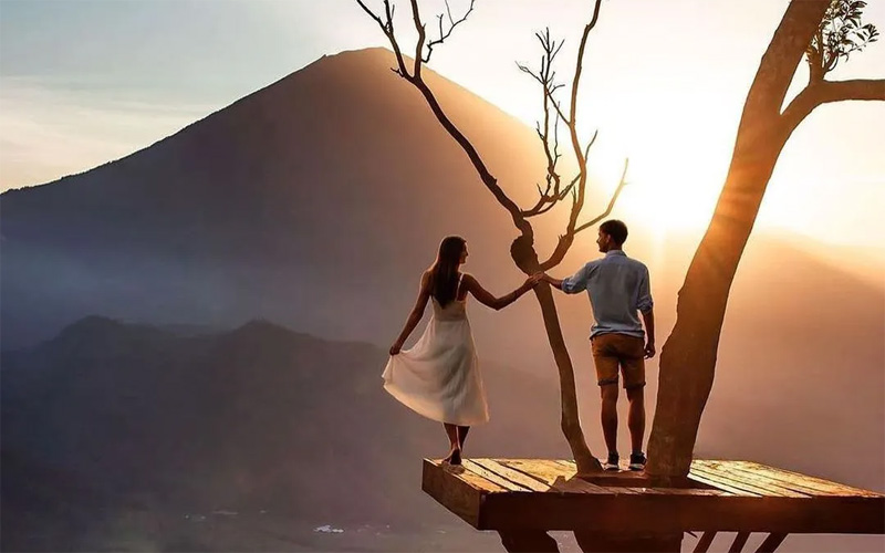 Begin your adventure before dawn, heading to the enchanting Lahangan Sweet viewpoint. Perched on a hill, this hidden gem offers unparalleled panoramic vistas. Witness the sky ablaze with vibrant hues as the sun rises over the majestic Mount Agung, Bali’s highest volcano, and the tranquil ocean.