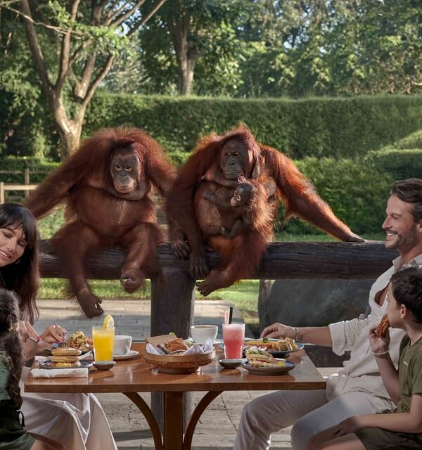 Start your day with a unique breakfast buffet at Gaya Restaurant, where orangutans swing and play nearby. Enjoy fresh fruits, pastries, and hot dishes while observing these incredible primates up close, with plenty of photo opportunities. General zoo admission is included.