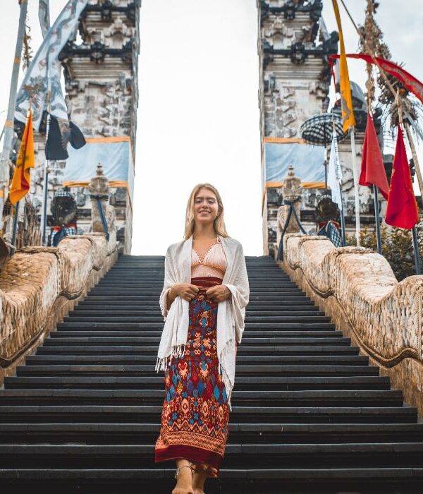Finally, visit Pura Lempuyang Luhur, often simply referred to as Lempuyang Temple, one of Bali’s oldest and most highly regarded temples. Considered one of the island’s Sad Kahyangan Jagat or “six sanctuaries of the world” – the most sacred places of worship on Bali. Situated on the peak of Mount Lempuyang in East Bali, near Amlapura in the Karangasem Regency, reaching this temple involves a significant climb, but the spiritual reward and breathtaking views are well worth the effort.
