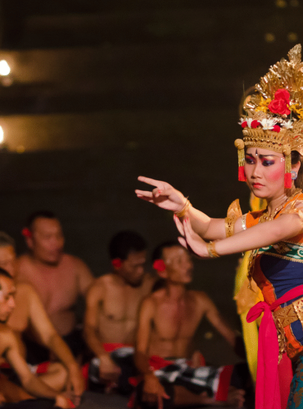 As the sun begins its slow descent towards the horizon, painting the sky in a breathtaking palette of oranges, pinks, and purples, you will find your place to witness the mesmerizing Kecak & Fire Dance performance. This unique Balinese art form is a truly captivating experience, a symphony of rhythmic chanting, evocative music, and dramatic storytelling that will transport you to another realm. The focal point of the Kecak is the powerful chorus of dozens of male performers, seated in a concentric circle, their voices weaving a hypnotic tapestry of “cak-cak-cak” sounds. This human orchestra provides the pulsating rhythm and dramatic undertones for the unfolding narrative, a scene often drawn from the epic Hindu tale of the Ramayana.